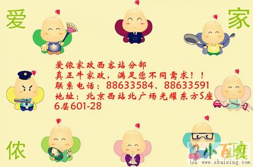 爱侬家政西客站分部拥有完善的管理体制,高素质的管理队伍和有多年家政行业服务经验的保姆、育儿嫂、月嫂、照顾老人、护工、保洁、小时工等家政服务人员x+b+a+i+x+i+n+g+c+o+m。公司积极探寻家政从业人员的职业发展,促进社会就业的良性循环,以实际行动参与政府的和谐社会建设工程。