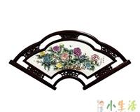 张松茂徐亚凤瓷板画瓷艺双绝 花开富贵扇形挂屏..