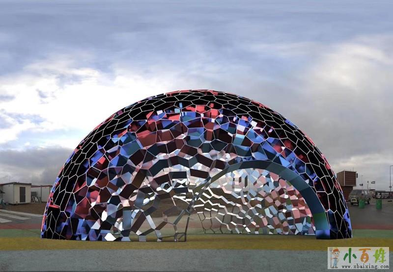 不锈钢镂空数字化半球雕塑 塑景雕塑制作安装完工图