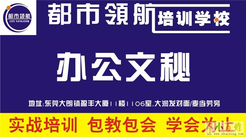 东莞大朗都市领航职业培训学校【办公文秘专业】零基础入学,随到随学,小班面授授课,学会为止,毕业推荐高薪就业,两年内享免费返修课程!学校常年开设白班,晚班,周末班,随到随学班,解决学员时间安排的困扰。更多详情,欢迎来电找曾老师咨询、到校实地考察试听,满意后再报名。