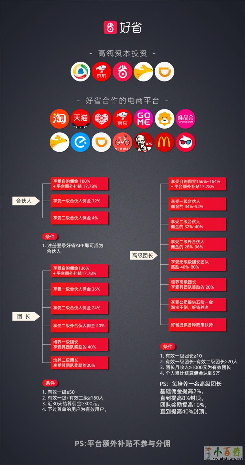 把好省当一份事业来经营,组建团队,前期努力推广,教会别人使用好省,后期源源不断的收益,当晋升团长后享受无限代佣金,晋升高级团长后还能享受公司的五险一金基础底薪,真正的淘宝不倒,好省养老x.b.a.i.x.i.n.g.c.o.m。