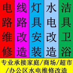 专业维修插座、灯具、开关、电源开关、电表、电表箱、室内电线、室内照明、室内明线、室内暗线、室内面板、短路跳掉)闸、漏电跳(掉)闸、故障跳(掉)闸,专业室内电路改造、室内照明改装、插座改装、电箱表改造等! 5、室内排水管道、雨水管干管、立管、支管、器具连接管安装维修。www.xbaixing.com小生活网