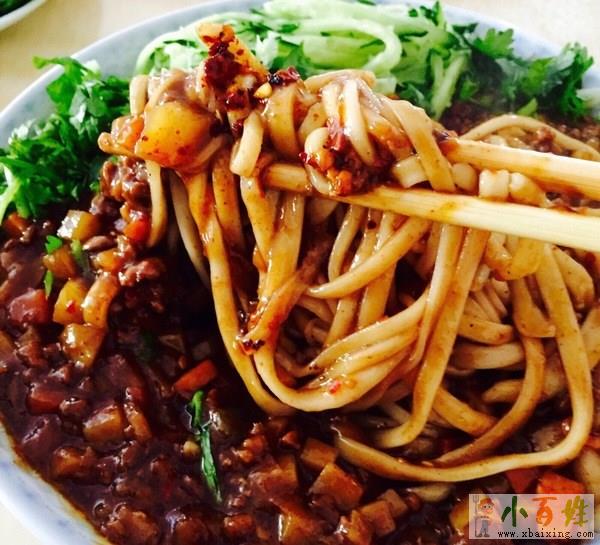 炸酱面是中国传统特色面食小.百.姓.网。最初起源北京,属山东鲁菜。不过在传遍大江南北之后便被誉为"中国十大面条"之一 ,流行于北京 、天津、山东、河北、辽宁、吉林等北方地区,由菜码、炸酱拌面条而成。将黄瓜、香椿、豆芽、青豆、黄豆切好或煮好,做成菜码备用。然后做炸酱,将肉丁及葱姜等放在油里炒,再加入黄豆制作的黄酱或甜面酱炸炒,即成炸酱xbaixing.com。面条煮熟后,捞出,浇上炸酱,拌以菜码,即成炸酱面。也可根据自己的口味加辣椒、醋等调味品。这样会更加符合自己的口味。也有面条捞出后用凉水浸洗再加炸酱、菜码的,称 "过水面"www.xbaixing.com。