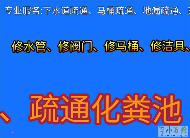 专业机械疏通室内管道,如小.百.姓.网:洗菜池,面盆,地漏,马桶,蹲便器等。 二,高压疏通车疏通生活区,酒店,学校,工厂内的各种大型管道。xbaixing.com 三,清理化粪池,吸污车抽化粪池。 四,水电维修及改各种管道。四;专业疏通下水小.百.姓.网 通马桶 改管道小_百_姓_网 水管马桶维修改装