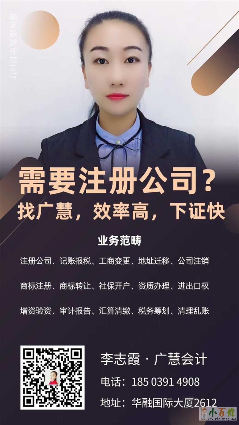 河南广慧会计服务有限公司是一家基于数据智能化应用的一站式企业服务平台,公司服务范围涉及工商注册、代理记账、商标服务、知识产权、社保服务、法律服务、税务筹划、互联网服务等,目前为河南新乡、郑州、洛阳、焦作、 濮阳、鹤壁、南阳、平顶山、周口、河北雄安新区等多个地区提供专业服务,累计服务企业上万家。小~百~姓~网