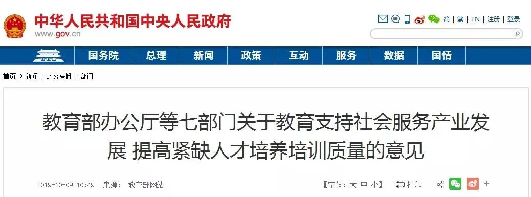 近日,教育部、民政部、商务部等七部门发布《关于教育支持社会服务产业发展 提高紧缺人才培养培训质量的意见》(简称《意见》)原文www.xbaixing.com。
