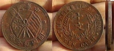 1911年辛亥革命胜利后,清帝退位,**成立。中国民主主义革命的先驱者孙中山就任**临时大总统,并在颁布的"临时大总统令"中提出要"另刊新模,鼓铸纪念币",随后武昌和南京两处造币厂率先铸行了 "**开国纪念币"铜元辅币,以十文面值的为主,在全国大量发行以取代清朝铜元xbaixing.com。这就是"**开国纪念币" 铜元的由来。 无庸置疑,这种铜元的币名很明确,就是"**开国纪念币"。根据钱币收藏界的一般共识,对一种钱币,应该把可以明确币名或显示钱币*主要特征的一面称为"面",而把其相对的另一面称为"背",据此我们应该把此币*能区别于前朝铜元,并具有鲜明的划时代革命和进步意义的有"**开国纪念币"(以下简称开国纪念币)字样的一面称为面,而把其对应记值的另一面称为背