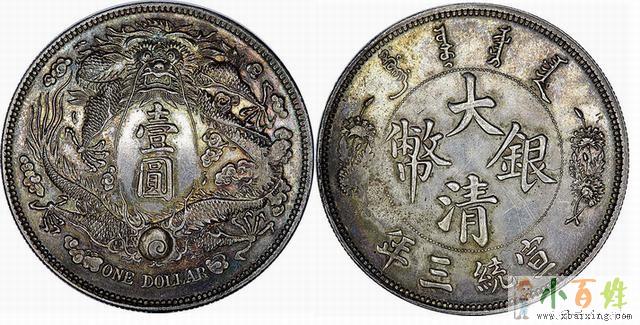 大清银币长须龙壹圆,清宣统三年(1911)天津造币总厂铸。清政府拟订了《整顿圜法章程》十条,其中提出银币专由造币总厂制造,保留南洋(江南)、北洋、广东、湖北四局为分厂原文www.xbaixing.com。大清银币长须龙壹圆,清宣统三年(1911)天津造币总厂铸。当时清政府欲统一币制,聘请海外高级技师精心设计制造了这套宣统三年大清银币,计有六、七种版式,长须龙是其中之一。新币刚试铸成功,正逢武昌起义,于是大部分新版银币胎死腹中,只留有少量样币小百姓网www.xbaixing.com。长须龙因背面龙首之须特长而得名,属于试样性质,因图案精致、存世稀少而受人重视。