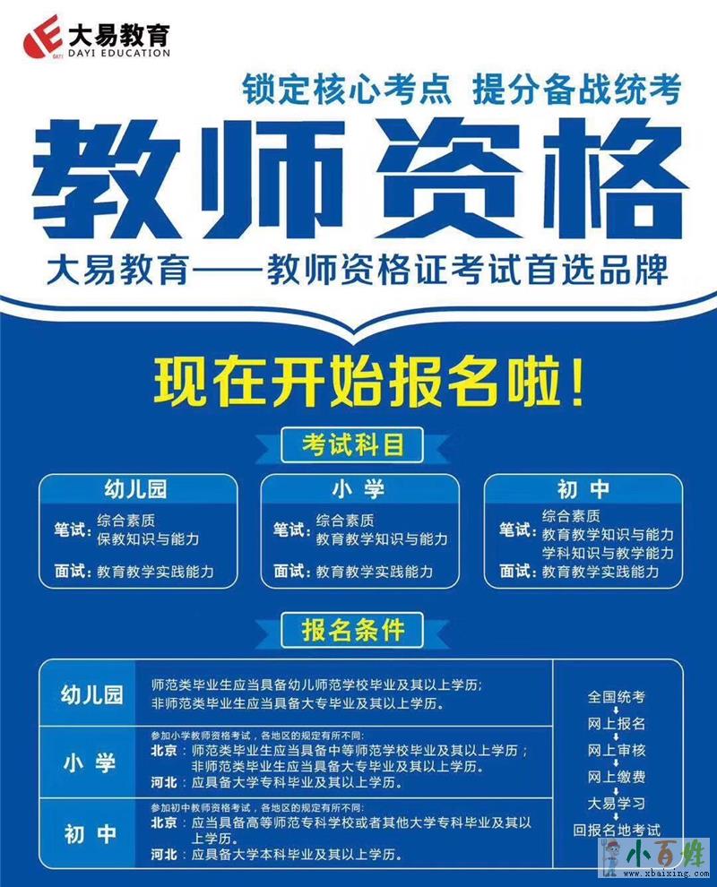 考一个教师资格证,陪伴孩子成长,大易教育自主研发教材,有自己的师资团队,北师大老师线上授课,直播回放,学习轻松,学员随时随地学习,不受时间地点限制,直击考试考点,助力学员无忧通关kMLj