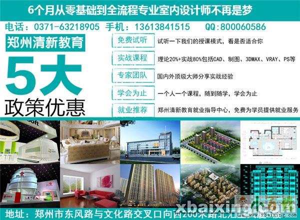 郑州清新教育:提供郑州、洛阳、南阳、安阳、新乡、商丘、开封、平顶山、焦作、驻马店、濮阳、周口、漯河、鹤壁、信阳、许昌、三门峡、济源、长葛、禹州、鄢陵等地区室内设计培训