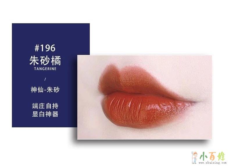 朱砂橘#196,气质漂亮的朱砂橘,仙女的颜色小_百_姓_网。饱和度高,显白,颜色明艳,充满水润感,唇后会带点红色调x~b~a~i~x~i~n~g~c~o~m。薄涂清透,显得温柔大方,知性端庄;厚涂有层次感x b a i x i n g c o m。