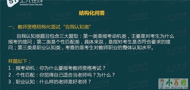 刚进入考场时,很多考生会顾虑自我介绍的问题x.b.a.i.x.i.n.g.c.o.m。其实教资面试的自我介绍并没有想象中那么困难,我们只要记住一件事即可,就是:禁止自报姓名和院校。