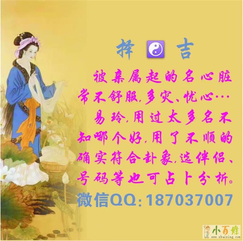 那么,如何给孩子起一个好名字呢?一定要根据孩子的具体情况,充分考虑各方面因素,尽量起一个对孩子一生有帮助的名字来自www.xbaixing.com。简单地说,名字不仅要好听、好写、好记,还要符合八字、易理、生肖等传统文化的需要。只有这样,名字才能更好地助运孩子的**、事业、家庭、安康等等。
