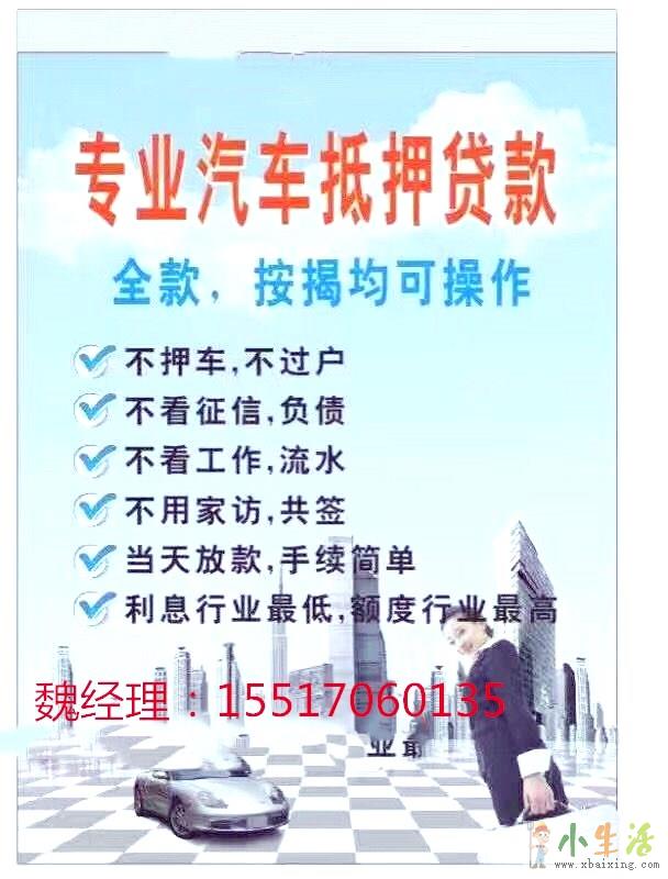 1、押手续不押车、双押均可操作小 生 活 网。2、放款成数高,当天放款。3、贷款流程:看车---签订借款手续---放款小生活网www.xbaixing.com。