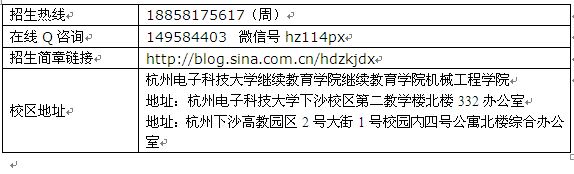 校区地址 | 杭州电子科技大学继续教育学院继续教育学院机械工程学院 地址:杭州电子科技大学下沙校区第二教学楼北楼332办公室 地址:杭州下沙高教园区2号大街1号校园内四号公寓北楼综合办公室 |