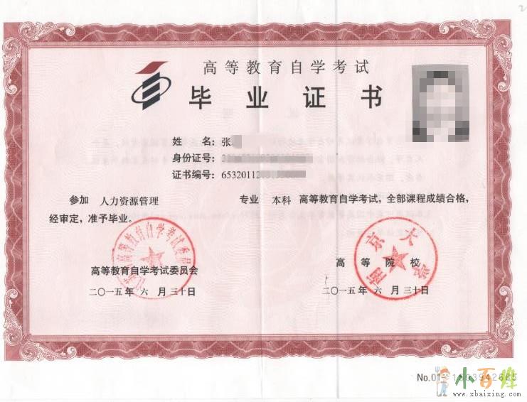 毕业证书:学生修完规定的全部课程并通过综合实践考核者,颁发国家统一印制、并加盖自考委员会和主考院校印章的毕业证书,国家承认学历,教育部电子注册,全国通用。