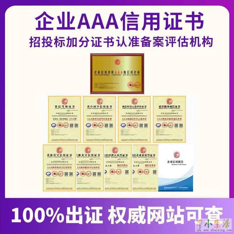 专业办理《企业信用AAA等级证书》《企业资信等级AAA证书》《诚信经营示范单位AAA荣誉证书》《质量服务诚信单位AAA证书》