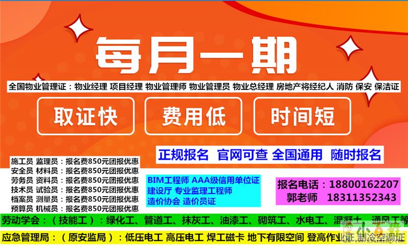 低压电工 高压电工 焊工磁卡 地下有限空间 登高作业证 建筑八大员 监理工程师 房地产经纪人 人力资源管理师来自www.xbaixing.com