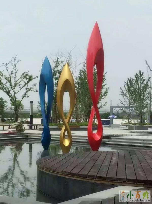 室外不锈钢烤漆八字型雕塑 艺术水景工厂地址