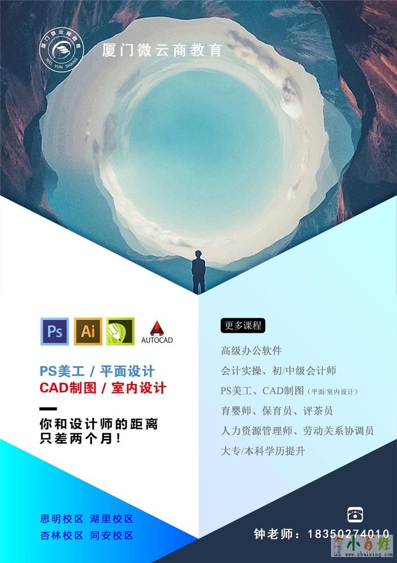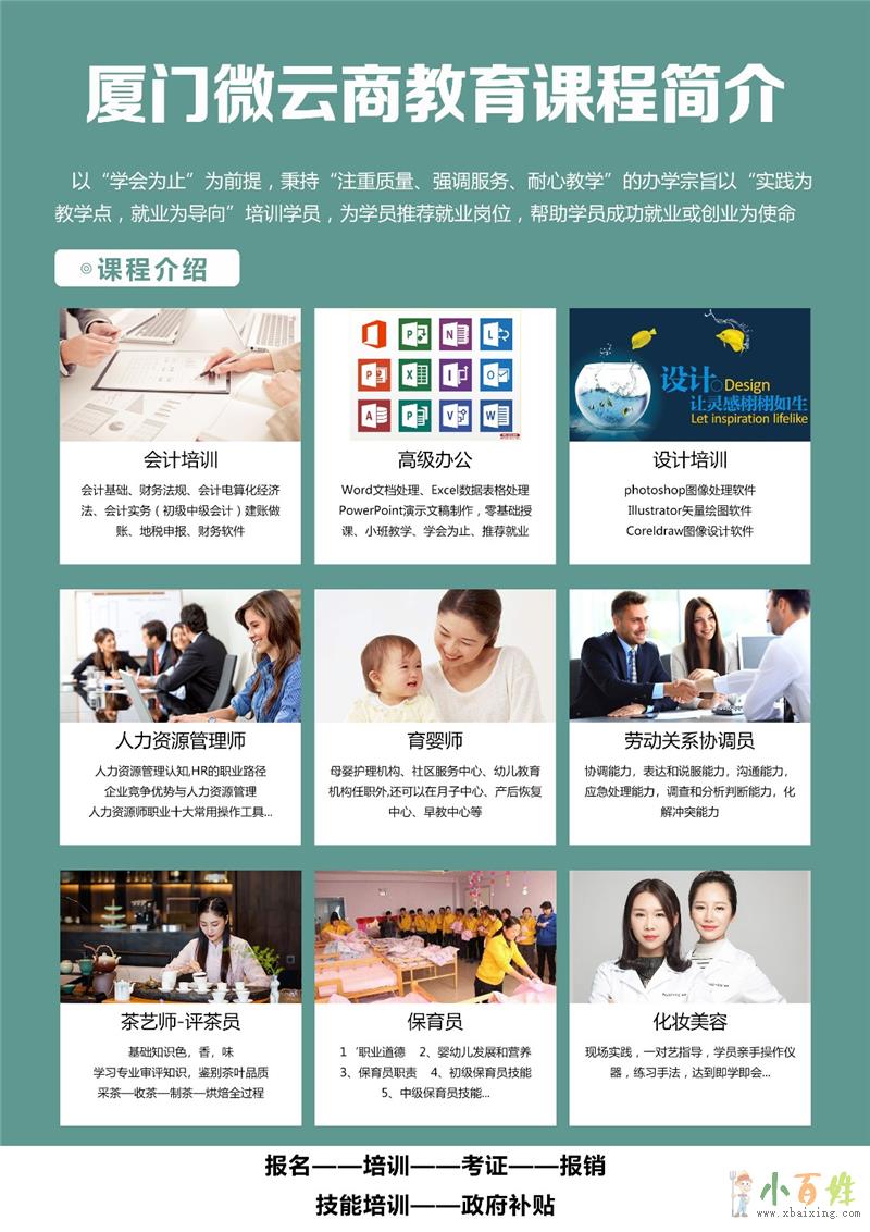 报名条件和学费等详情咨询:0592-2235662、18350274010(微信同号)钟老师www.xbaixing.com小百姓网