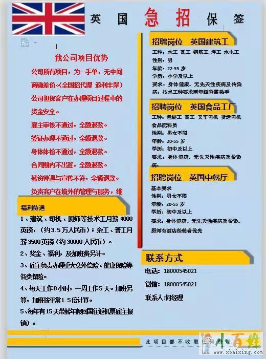 出国劳务英国急招建筑工普工司机厨师等等年薪25万起原文www.xbaixing.com