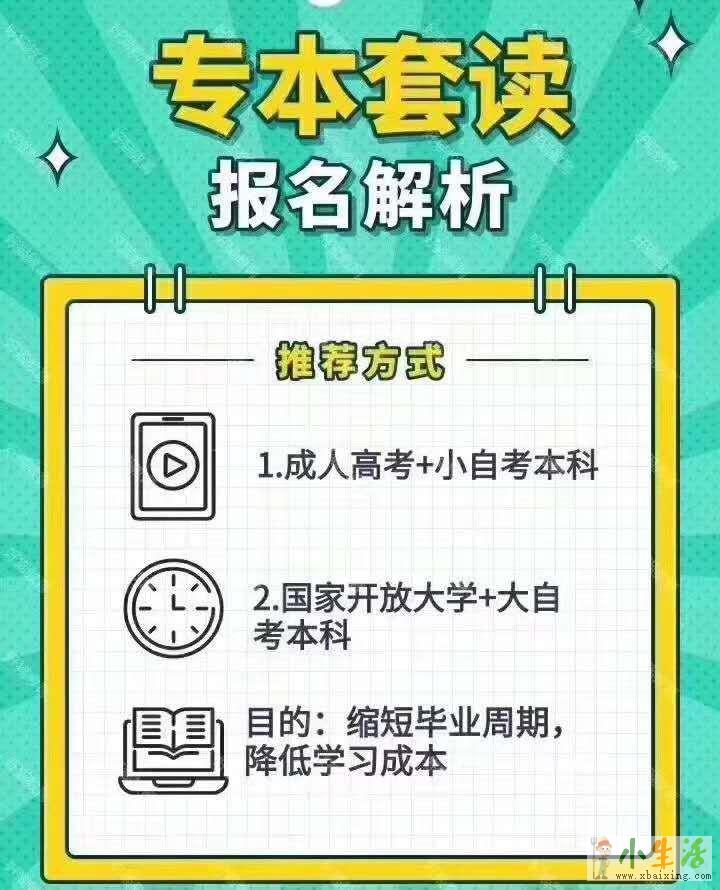 2成人高考大专+自考本科(最快3—3.5年)www.xbaixing.com小生活网