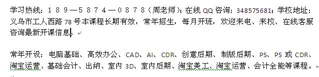 学习热线:189—5874—0878(周老师);在线QQ咨询:348575681;学校地址:义乌市工人西路78号