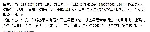 温岭校区地址:台州市温岭市万昌中路118号;分校有泽国/路桥/椒江/临海/玉环,可就近报读学习原文www.xbaixing.com。