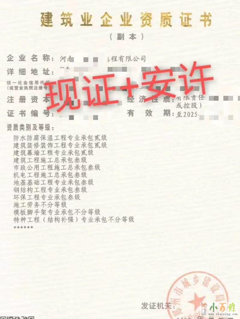 转让河南12项资质,现证定金已收,3个月手续办齐!